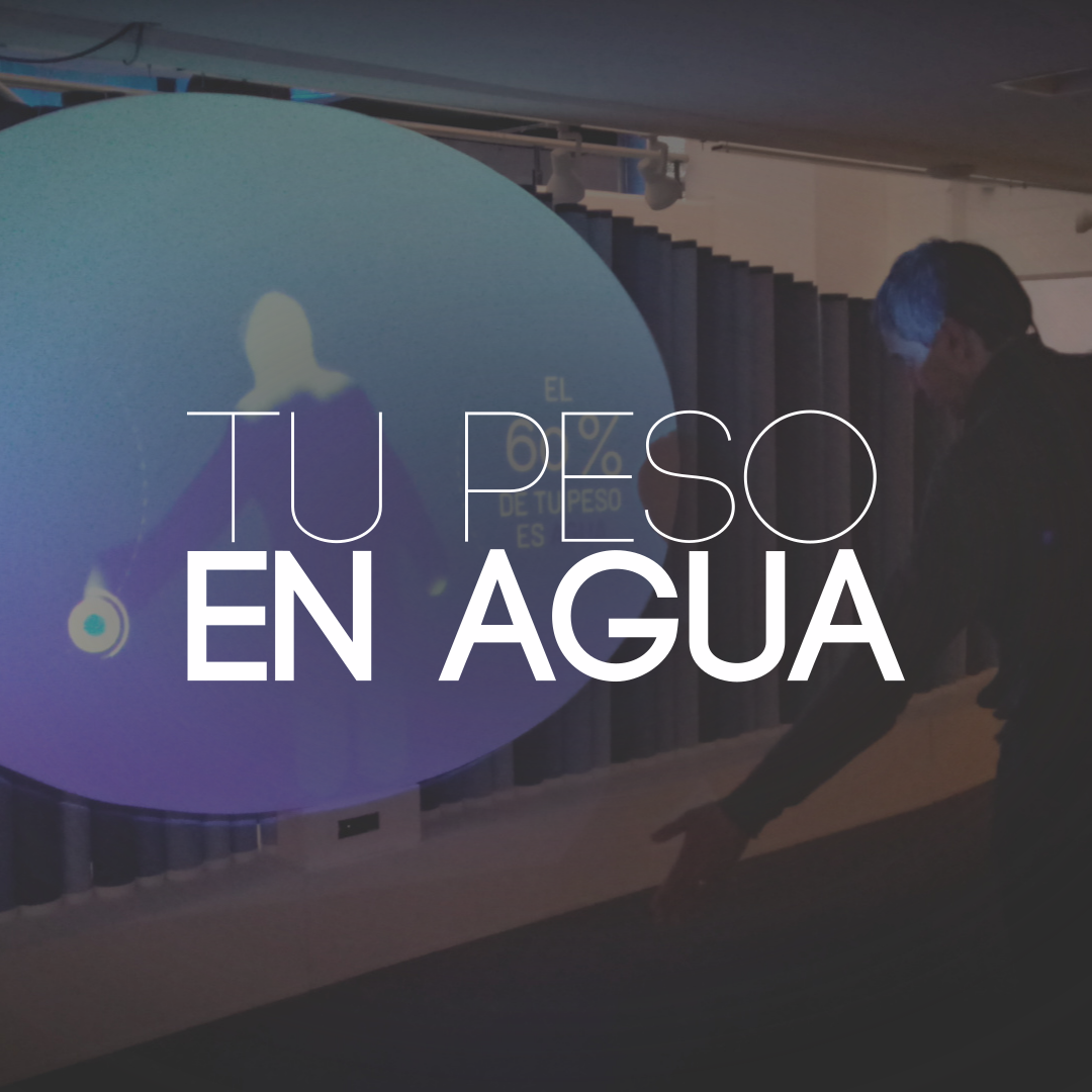 TU PESO EN AGUA es una instalación interactiva desarrollada con el medialab LAIT sobre la base del diseño inicial a cargo de la Lic. Andrea Sosa. Diseñamos la GUI y desarrollamos esta instalación interactiva con captura óptica de movimiento para la muestra de Ciencia, Arte y Tecnología Planeta Agua, inaugurada en septiembre de 2019.